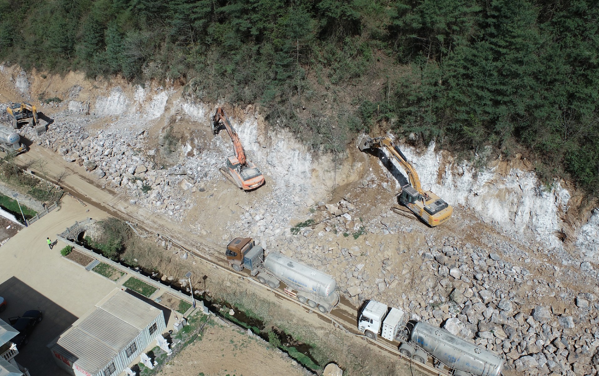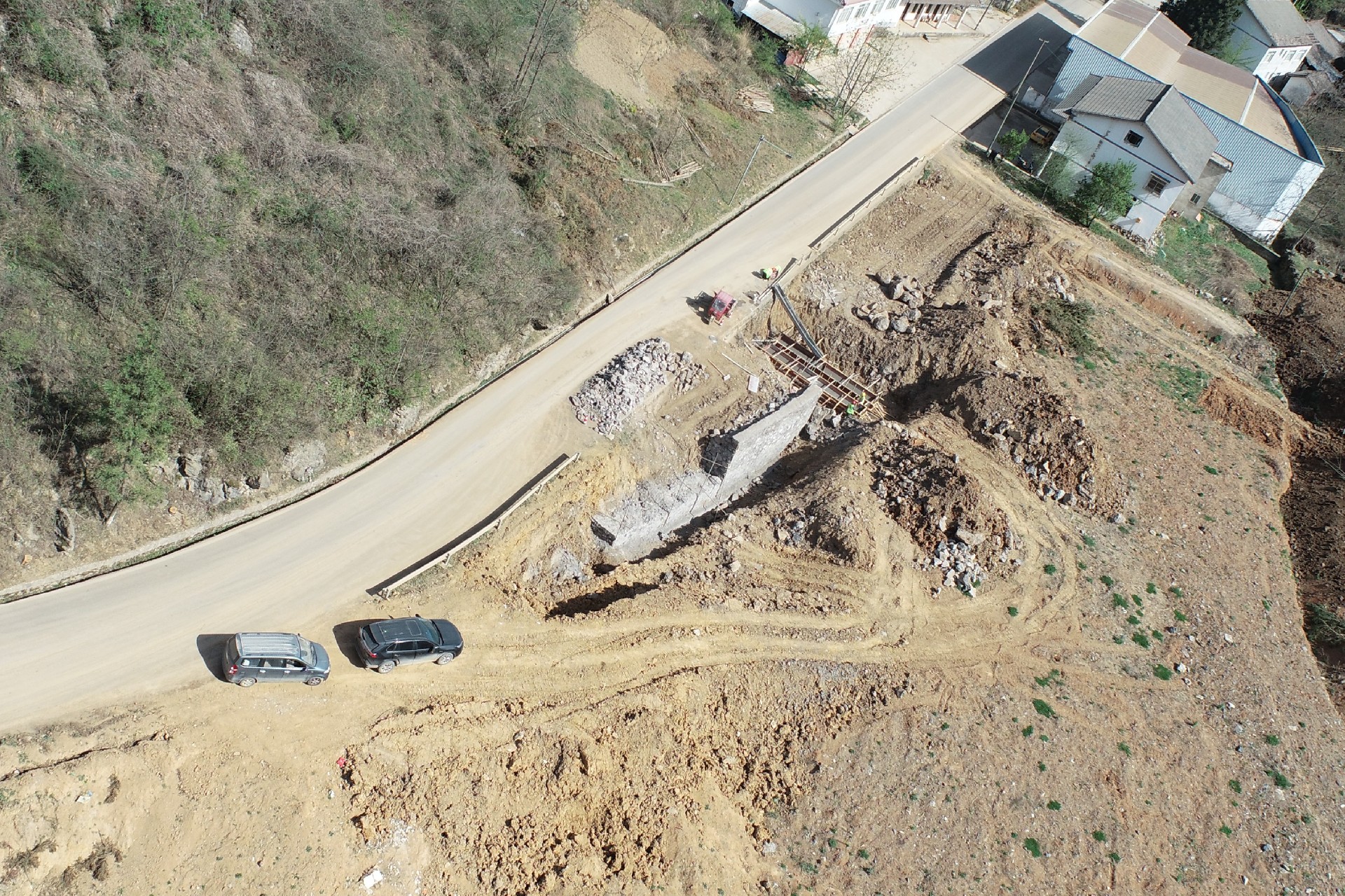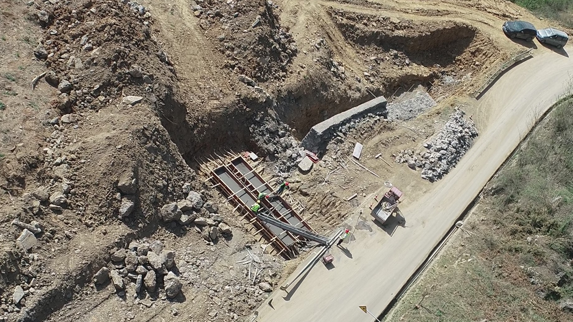 目前正在进行主线路基开挖,完成盖板涵预制85块,占总数52%;挡防工程5023方,占总数31%;土石方开挖6.5万方,占总数12%,利用土石方1.5万方,占总数11.5%;场镇段400米右幅底层6cm油面铺设。