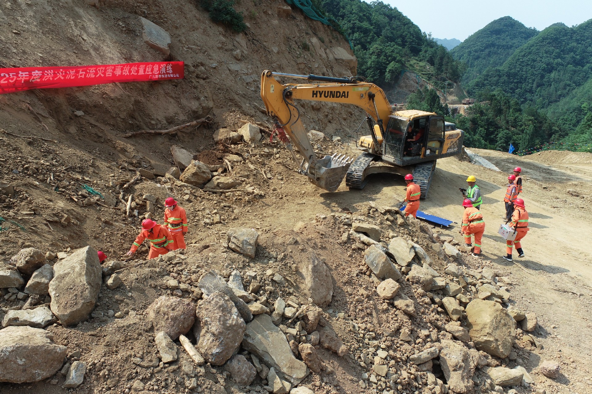 剑阁县下寺至利州区月坝公路项目(三个石至硝洞垭段)举行综合应急演练,模拟山洪引发泥石流险情处置、森林火情扑救等场景,通过无人机侦查警戒、应急分队施救、大型无人机空投、生命探测仪搜寻等措施,强化全员安全意识,提升自救互救技能水平。