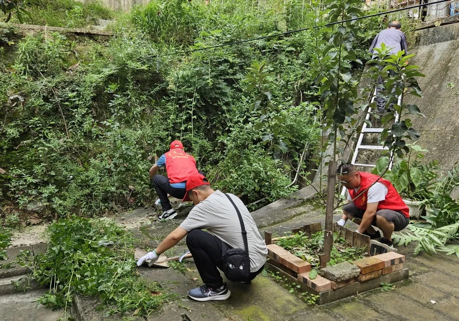 活动当天,党员同志们来到橄榄园社区的西铁小区,开展环境卫生整治行动,大家纷纷拿起镰刀,去除砖缝中的杂草,以改善群众的居住环境,提升居民生活幸福感。